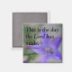 Dieser Magnet zeigt Psalm 118:24a und die Staaten: "Dies ist der Tag, den der Herr gemacht hat." Es wird durch eine leichte lila Blume betont.