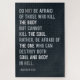 "Fürchte dich nicht vor denen, die den Körper töten, aber das Soul nicht töten können. Stattdessen fürchten Sie sich vor dem einen, der sowohl Soul als auch Körper in der Hölle zerstören kann." - Matthew 10:28 Christlich Bibelverse aus dem Neuen Testament