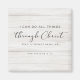 "Ich kann alles durch Christus tun, der mich stärkt" Typografie Bible Verse der Philippinen 4:13 in einem sauberen und eleganten Drehbuch und Text, auf hellem Holz texturierten Hintergrund.