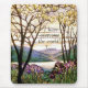 Herrliche Vintage Tiffany beflecktes Glasfenster-Wiedergabe einer Naturszene mit einem Bibel-Vers: Ich habe die Welt überwunden! - Jesus. Mousepad.