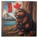 Biber am See mit kanadischer Flagge Fliese