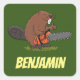Biber mit Kettensäge, lustige Cartoon-Illustration Quadratischer Aufkleber