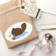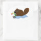 Biber mit Sticken und Blume Ovaler Aufkleber