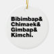 Bibimbap und Chimaek und Gimbap und Kimchi. - Hangug Eumsig. Globe Trotters ist auf die Idiosynkratische Bildsprache aus der ganzen Welt spezialisiert. Hier finden Sie einzigartige Grußkarten, Postkarten, Poster, Mousepads und mehr.