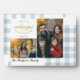 The layout features a dusty blue and ivory color pallet with soft buffalo plaid pattern adding a warmth to the photo display. The verse is placed beside the collage in script and serif typography for a modern look.