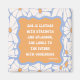"Sie ist mit Kraft und Pracht bekleidet, blickt mit Zuversicht in die Zukunft." - Sprichwörter 31:25. Ein niedlicher blauer und orangefarbener Magnet mit einem inspirierend biblischen Zitat!