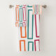 Dieses Set ist in einem modernen Design aus der Mitte des Jahrhunderts gestaltet, das Rechtecke in aquamarinen, orangefarbenen, rüben und orangefarbenen Farbtönen auf weißem Grund wiedergibt. Wenn Ihnen das Design gefällt, aber andere Farben bevorzugen, dann schreiben Sie mir.