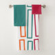Dieses Set ist mit einem Bettwäsche, einem türkisfarbenen Handtuch und einem Badehandtuch ausgestattet, das sich in einem aquamarinen, orangefarbenen, orangefarbenen und orangefarbenen Rechteck aus der Mitte des Jahrhunderts wiederfindet. Wenn Ihnen das Design gefällt, aber andere Farben bevorzugen, dann schreiben Sie mir.