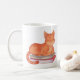 Eine Tabbierkatze nimmt ein Nickerchen in einer ruhigen Bibliothek. Digitale Malerei mit Paint Tool Sai.