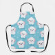 Das Bild ist ein niedliches Muster, das die jungen Bichon Frise Welpen auf blauem Hintergrund mit spielerischen Knochen- und Pfotendruckakzenten zeigt.