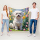 Bichon Frise Dog Spring Blumen Malerei Fleecedecke