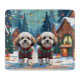 This festive design captures the joyful spirit of the holiday season, featuring an adorable dogs.Nestled in a winter wonderland, complete with a decorated Christmas tree, and beautifully wrapped presents. Snowflakes gently fall, adding a magical touch to the scene, while the vibrant colors of the holiday decorations create a warm and cheerful atmosphere.