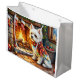 Bichon Frise Fireplace with Christmas Lights Große Geschenktüte