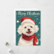 Ein niedlicher Bichon Frise wünscht frohe Weihnachten.