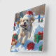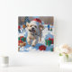Bichon Frise Weihnachtsfest Schneeszene Quadratische Wanduhr