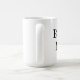 Weiße Tasse mit schwarzem Text und einem kleinen roten Herzen