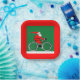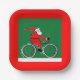 Christmas holiday cycling bicycle party plates featuring funny Santa cyclist.
