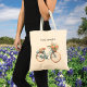 Personalized watercolor floral bicycle bike tote bag. Shopping, beach, school, work, travel, gift, love.