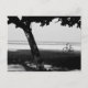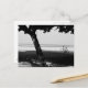 Postkarte mit Schwarz-Weiß-Fotografie mit einem Fahrrad am Strand. In Sanur Beach auf Bali Island.