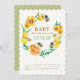 Eine Sonnenblume umringt von blühenden Bienen vor einem geometrischen Hintergrund für diese inspirierte Babydusche