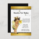 Bringen Sie eine Babyduschkarte mit niedlichen, ethnischen Babys, die eine bezaubernde Hummelausstattung auf einem hübschen schwarzen und goldenen Hintergrund mit fliegenden Hummeln tragen. Sie können diese Mädchen anpassen bringen ein Buch Baby Dusche Einsteckkarten mit Ihren Details im Schriftart Stil und Wortlaut Ihrer Wahl.