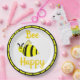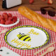 Es ist Frühling, in dem die Bienen anfangen herauszukommen. Dress up your Patio Tisch oder Picknick-Tische mit niedlichen, lächelnden, gelben schwarzen Streifen Hummel auf seinen Flügel Papier Teller. Der Hintergrund ist knusprig weiß. Die Grenzlinie ist schwarz mit schwarzen Punkten auf gelbem Hintergrund dargestellt. Original Graphic Artwork © TamiraZDesign. www.zazzle.com/tamirazdesigns
