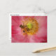 Auf dieser Postkarte befindet sich eine Honigbiene, die die gelben Farbtupfer eines schönen rosa Shirley-Mohns bestäubt. Die goldene und schwarze Biene in den zarten rosa Blütenblättern schafft ein impressionistisches, malerisches Ambiente.