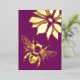 Gartentheater, Biene und Blume Folie Einladung Vorlage. Eine große Biene fliegt zu einer Blume auf der Vorderseite von Flachkarten. Die Bilder sind Goldfolie, oder wählen Sie Silber oder Rose Gold. Der Hintergrund ist rot-lila, um dem Text auf der Rückseite zu entsprechen. Erstellen Sie Ihre Einladungsworte über einen Hintergrund für Wildblumen. Text ist in Absatz-Form und ist leicht zu wechseln für eine Hinterhof Hochzeitseinladung, Dusche, Verlobung, Geburtstag oder Ansammlung mit Freunden.