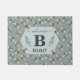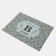 Willkommene Gäste mit dieser eleganten Biene-themenorientierten Fußmatte. Der Entwurf hat einen Imitatleinwandblick in den Schatten von Grauem, von Gelbem und Licht - Blau - Grau. Der Hintergrund umfaßt ein helles Bienenwabenmuster mit einem ursprünglichen Muster der kriechenden Bienen. Die zentrale Bienenwabenform sagt "willkommenes" mit Raum für Ihr personalisiertes Monogramm und Familiennamen. Der Entwurf umfaßt auch Blumenverschönerungen. Feiern Sie Ihre Liebe der Honigbienen mit dieser Biene-autiful Fußmatte. Wählen Sie Ihre eigene Größe.