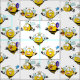 Niedliche und skurrile Bienen schmücken diesen bunten Stoff.