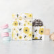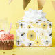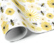 Verpackungspapier, das ein Muster der Bienen und der Blumen mit einem gelben und schwarzen Farbentwurf kennzeichnet.