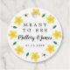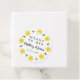 Blütenmarken mit "soll man sein", die in einem Rahmen aus gelben Butterbechern, Bienen und grünen Blätter geschrieben sind. Fügen Sie Ihre Namen in einem charmanten schwarzen Kalligraphieskript und Ihrem Hochzeitstag hinzu. Die Rückseite weist ein tiefgrünes Polka Punkt Muster auf.