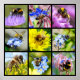 Neun verschiedene Fotos Bienen und Hummeln fütternd Blume