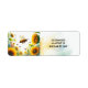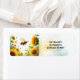 Eine belebte Biene mit einer Kolonie, die um einige schöne goldene Sonnenblumen auf diesem Adressetikett weht. Eine weiche goldgelbe und blaue Aquarellfarbe betont die Adresse. Passen Sie Ihre Wünsche an.