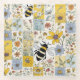Bienen Vintage Blumenmuster in Blues und Gelbe Glasuntersetzer