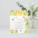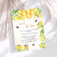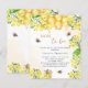Eine niedliche Baby-Dusche mit weißem und goldfarbenem Hintergrund. Mit Hummeln dekoriert, Honig und Honigwabenmilch mit gelben Blumen, Blume und Honiggläsern geschmückt. Mit dem Text: Mama zu sein. Personalisieren und fügen Sie den Namen der Mutter zu sein. Goldene und schwarze Buchstaben. Geschlechterneutral.