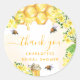 Stilvoll weiß und goldfarben, das Wasser ist gefliest. Mit Hummeln dekoriert, Honig und Honigwabenmilch mit gelben Blumen, Blume und Honiggläsern geschmückt. Der Text: Vielen Dank mit einem goldenen handgeschriebenen Stil Skript mit Swashes. Personalisieren und fügen Sie einen Namen und Text hinzu. Für Brautparty Gastgeschenke.