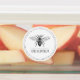 Handgezeichnete Honigbiene in einem Kreis-Etikett für Ihre aus Honig gewonnenen Produkte. Ideal für die Kennzeichnung von Honiggläsern, Seifen, Kerzen und anderen Produkten. Fügen Sie Ihren Firmennamen oder einen beliebigen Text hinzu. Ideal auch für den persönlichen Gebrauch!