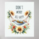 Ein reizvolles Design mit einer gemütlichen Biene, die in einer Hängematte mit der spielerischen Botschaft "Don't Worry Bee Happy" entspannt ist, umgeben von einer blumengeschmückten Einrichtung, die das Wesen der Freude und Entspannung in der Natur einfängt.