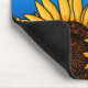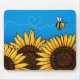 eine niedliche Biene fliegt über eine Reihe der Sonnenblumen und verlässt eine Herz-förmige Spur auf diesem hellen blauen mousepad