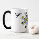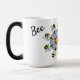 Bee Magical Back Skript-Nachricht wird angezeigt, wenn die Tasse wird heiß. Die lila Blume Mandala-Design im Hintergrund, mit Buzz die Biene, in einem repetitiven Muster. Die Morphing Tasse ist magisch!! Es ist meine LieblingsTasse, an der ich designe. Originelles Grafikdesign.