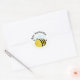 Biene Phantastische Hummeln. Niedliche, sonderbare Aufkleber mit einer Honigbiene aus schwarzem und gelbem Cartoon. Es hat einen großen ovalen gelben Körper mit drei schwarzen vertikalen Streifen. Sein Stinger ist schwarz und hat hellblaue, transparente Flügel. Zwei schwarze Fühler auf dem Kopf und ein niedliches glückliches Gesicht. Der Hintergrund ist weiß, kann aber durch Anklicken des Buttons angepasst und die Hintergrundfarbe Ihrer Wahl ausgewählt werden.