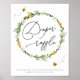 Bienennutzungsschild für Eintrittskarten für das Windlerherrennen. Gerahmt von einem Aquarellkranz von Gänseblüten und Grünpflanzen umgeben von lebhaften Bienen.