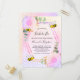 Elegante, lustige, rustikale Sommer Brautdusche Einladung. Ein regenbogenfarbener Hintergrund in rosa, lila und goldfarben mit Wabenmuster. Ein geometrischer Rahmen. Dekoriert mit Blume und Eukalyptuspflanzen und glücklichen Hummeln. Mit dem Text: Bride to Bee und der Name der Braut vorne geschrieben mit einem modernen handgeschriebenen Stil Skript. Schwarze Buchstaben. Zurück: Wabenmuster Tipp: Wenn Sie es nicht so gewollt haben, dass es wie eine Postkarte aussieht, klicken Sie auf Anpassen, gehen Sie auf die Rückseite und entfernen Sie den Trenner und posten Sie die Briefmarke.