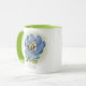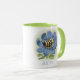 Niedliche Bienen, die sich glücklicherweise im Pollen einer blauen Blume herumrollen, erinnern uns daran, "Ihrem Glück zu folgen". Illustration von Scott DuBar.
