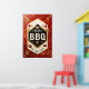 Eine Illustration eines stilisierten GRILLEN-Grills mit den Worten "Beer & GRILLEN Go Together". Das Design ist in Rot und Gold gehalten und mit dekorativen Akzenten versehen.