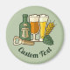 Bier-Darstellung. Flasche, Glas, Öfen, Hopfen und Gerste. Benutzerdefinierte Hintergrundfarbe. Eigener Text.