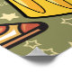 Bier-Tasse und Pizzaslices mit Käse und Pepperoni und hellbeige Sterne in einem Dijon-Grün. Sie können die Farbe an jede gewollt Auswahl anpassen. Gute Idee für ihn! Bier und Pizza lieben Grafik Design.