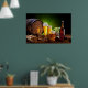 Bierfass mit Bierbrille auf einem Holztisch Poster