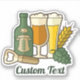 Bier-Darstellung. Flasche, Glas, Öfen, Hopfen und Gerste. Eigener Text.